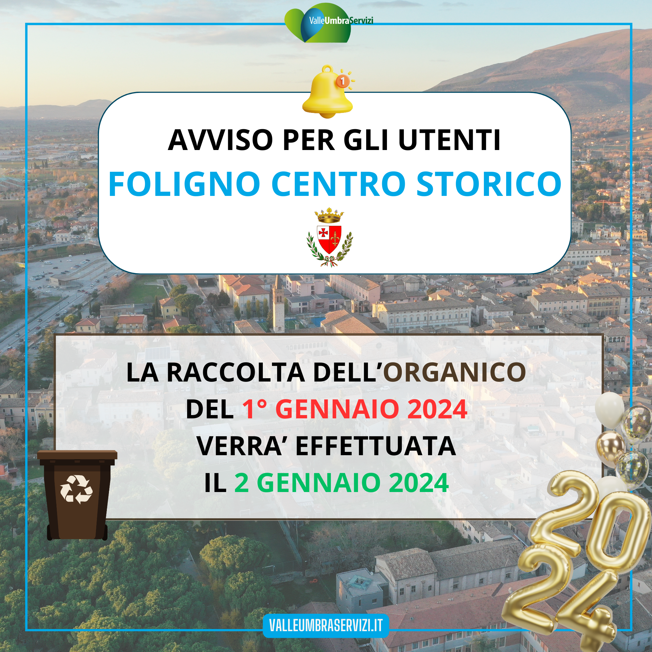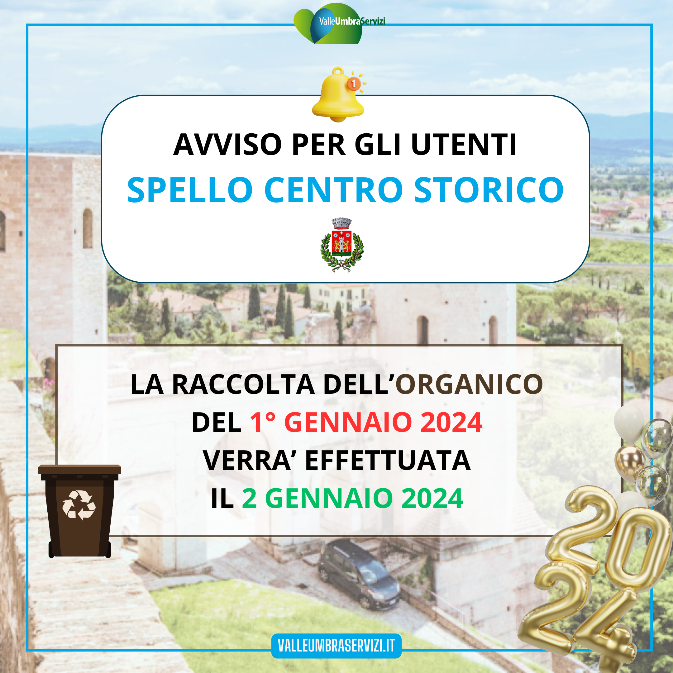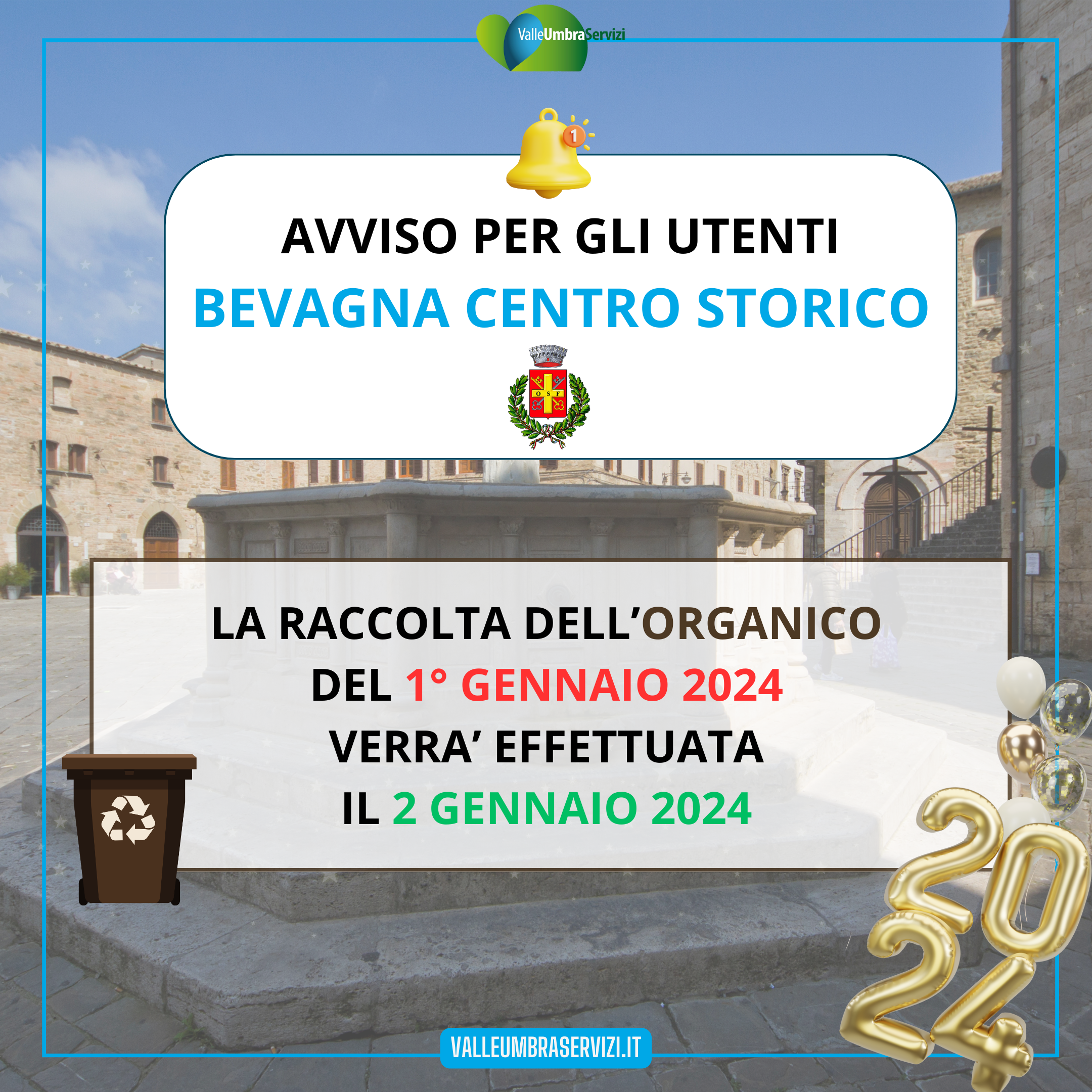 la raccolta dell'ORGANICO del 1° gennaio 2024 verrà effettuata il 2 gennaio 2024 |