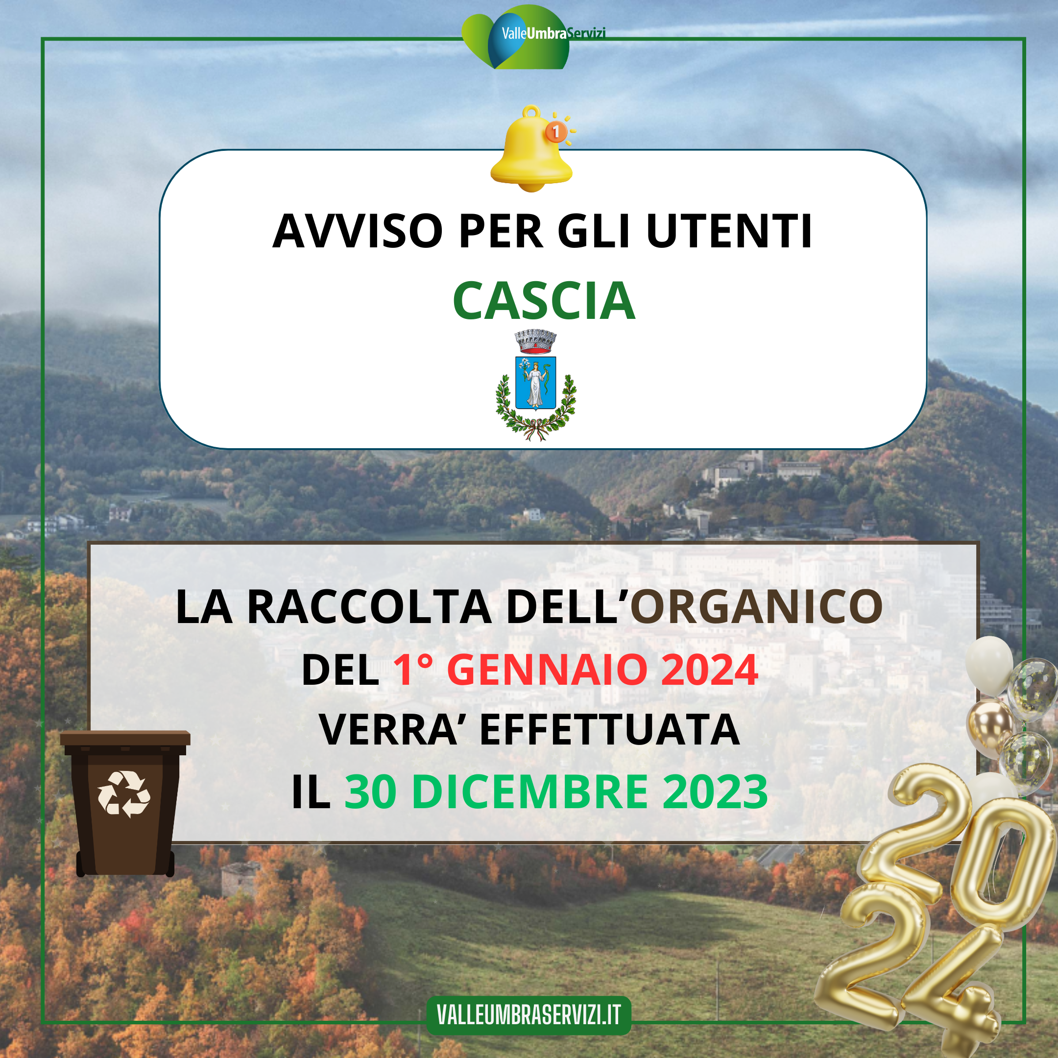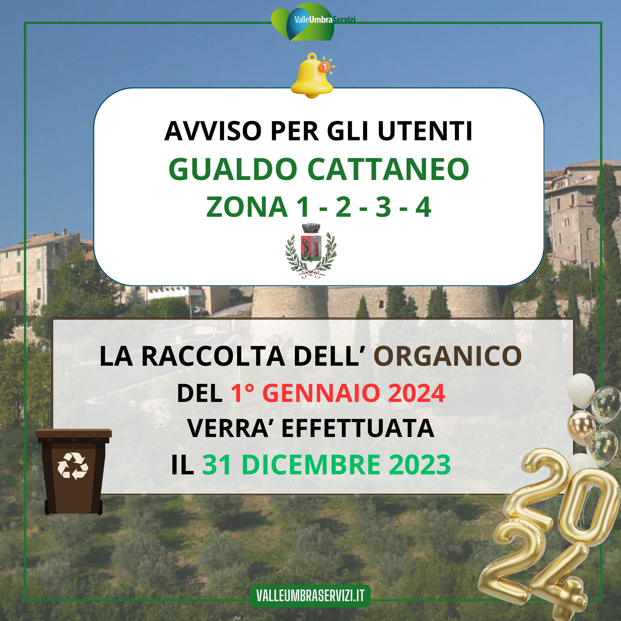 la raccolta dell'ORGANICO del 1° gennaio 2024 verrà effettuata il 31 dicembre 2023 |