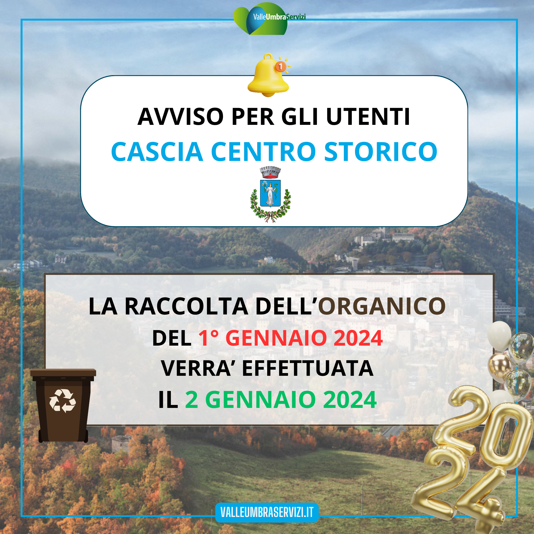 la raccolta dell’ORGANICO del 1° gennaio 2024 verrà effettuata il 2 gennaio 2024 |