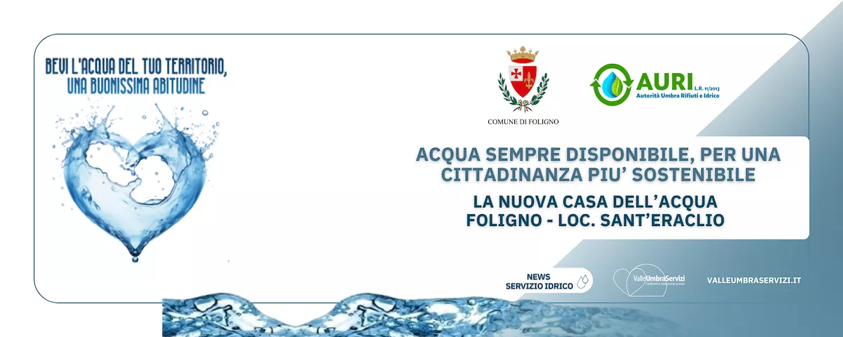 Venerdì 27 febbraio 2026, alle ore 11:00, si terrà l’inaugurazione della seconda Casa dell’Acqua del Comune di Foligno, installata in via Colle Scandolaro, in località Sant’Eraclio, nei pressi del parcheggio della Scuola dell’Infanzia Colle Scandolaro.